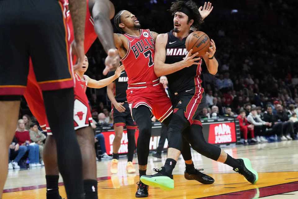 中场休息回来,热火继续攻防碾压公牛,在第三节进一步提升火力首次单节得分35+,还限制公牛第二次单节不足25分。阿德巴约与拉松持续内外肆虐得分,引领热火单节39-22净胜17分,三节结束热火扩大101-62领先公牛。前三节比赛,热火三分28中11,阿德巴约11中8得到20+9与拉松11中8得到20+4+4,引领5人得分上双;公牛三分仅32中3,怀特16+4+3与武切维奇12分。